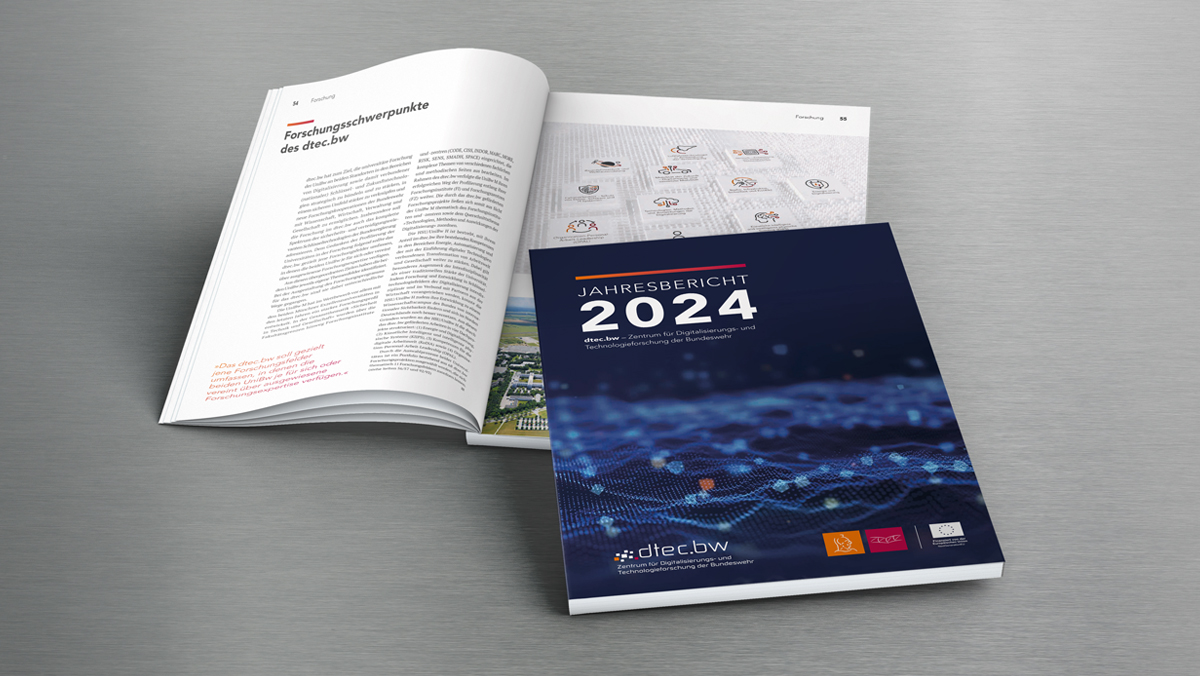 Im Rahmen der dtec.bw Jahrestagung 2025 ist erstmals der dtec.bw Jahresbericht erschienen. Der Bericht fasst die erste Phase des Zentrums von 2020 bis 2024 an beiden UniBws zusammen und präsentiert alle 68 geförderten Forschungsprojekte aus diesem Zeitraum an der Universität der Bundeswehr München sowie der Helmut‑Schmidt‑Universität/Universität der Bundeswehr Hamburg.