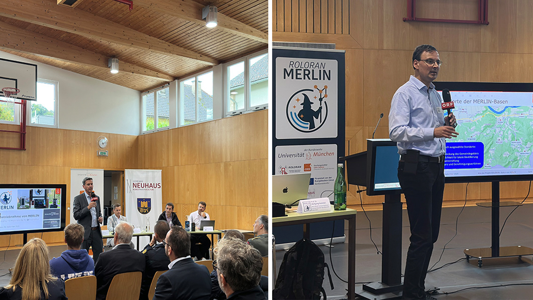 Mit dem »Messaging-System mit regionaler LoRa-Infrastruktur« (MERLIN) wurde in der Gemeinde Neuhaus (Kärnten, Österreich) nun ein neuartiges, energieautarkes Notfall-Kommunikationssystem vorgestellt, das auch bei langanhaltenden Stromausfällen zuverlässig funktioniert. Entwickelt wurde die Technologie von einem Team des Forschungsinstituts CODE der Universität der Bundeswehr München unter der Leitung von Prof. Dr. Wolfgang Hommel im Rahmen des dtec.bw-finanzierten Projekts »Resilient Operation of LoRa-Networks« (ROLORAN).